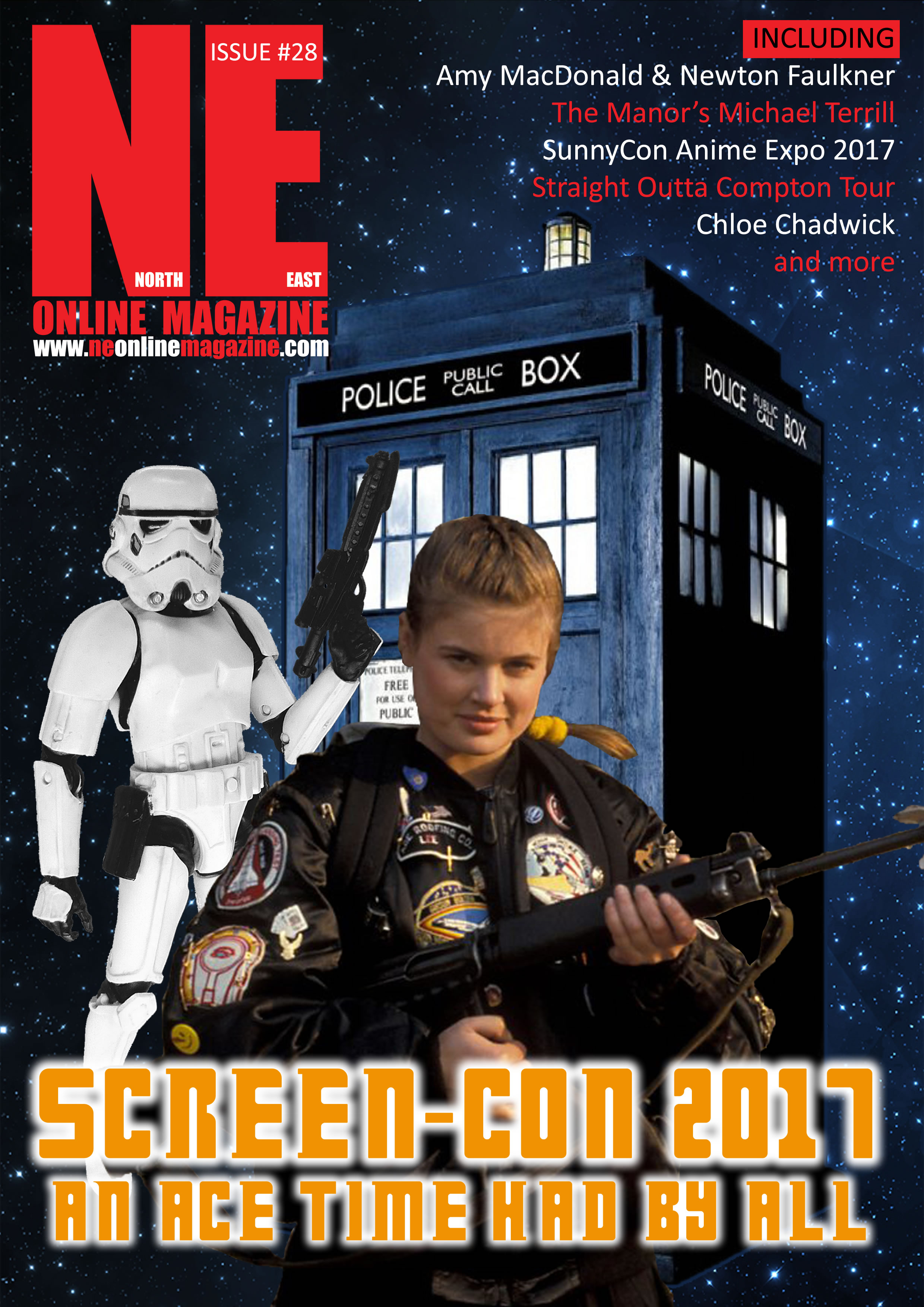 In this issue NE travels back in time with Screen-Con 2017 to meet special guests Sophie Aldred, Martine Beswick and Laurie Goode as well as helping to raise lots of money for 3 great charities. We chat with North East fighter and BKB World Champion Michael Terrill, find out more about music star Chloe Chadwick, get info on this year’s SunnyCon Anime Expo and NERG and review the Amy MacDonald and Newton Faulkner gig. This issue sees some amazing events at The Sage, Newcastle City Hall and the Theatre Royal plus Medieval Mischief and the Straight Outta Compton Tour. We also have a roundup of the top films coming to Cineworld and tell you how what’s new at Red Hot Sunglasses.