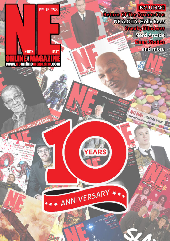 Can you believe NE is 10 Years old? So in this birthday issue we find out about NERD Arcade, Review Screen-Con, chat with Sneaky Blinders, hear from NE Artist Of The Year, Holly Rees, talk Music wellbeing with Dean Stobbs, books with Peter Mann and Zoe Billings, get musical with Elizabeth Liddle and Vandebilt and look beyond with Life’s Planetarium. We also look ahead to the new season with Northern Football Alliance, see what’s coming to Cineworld and Playhouse Whitley Bay as well as bring you the latest fashion from Northern Threads, plus lots of adverts for some great events and businesses in the North East.
